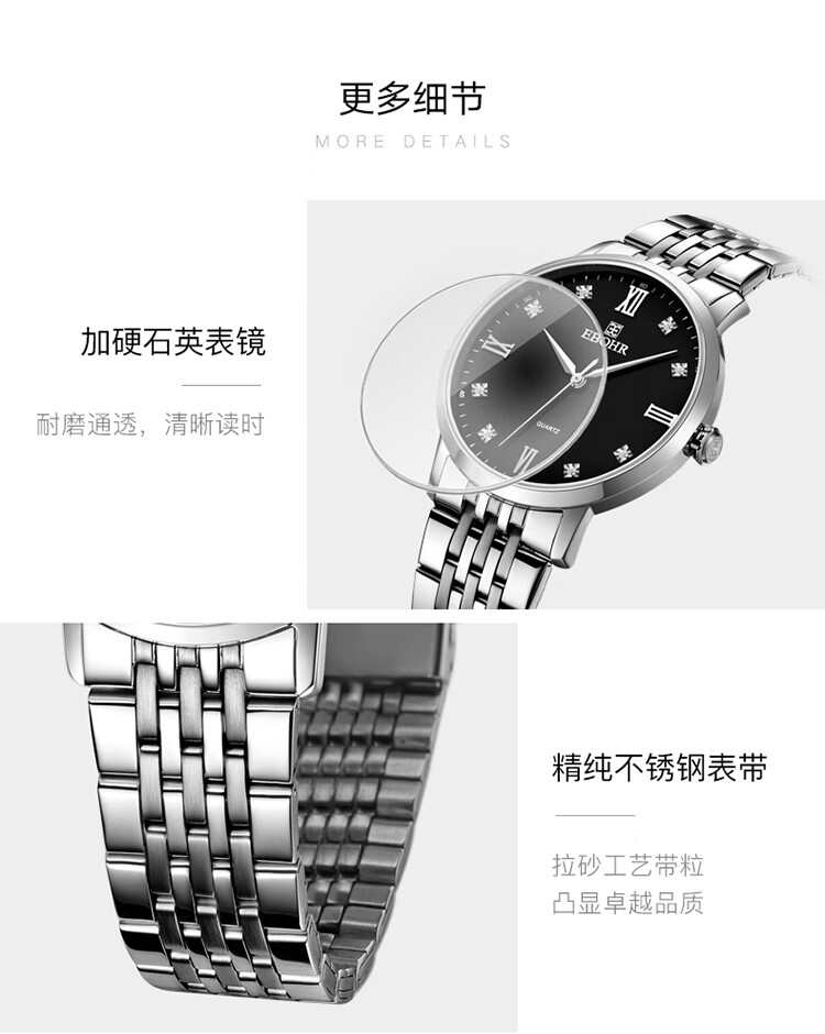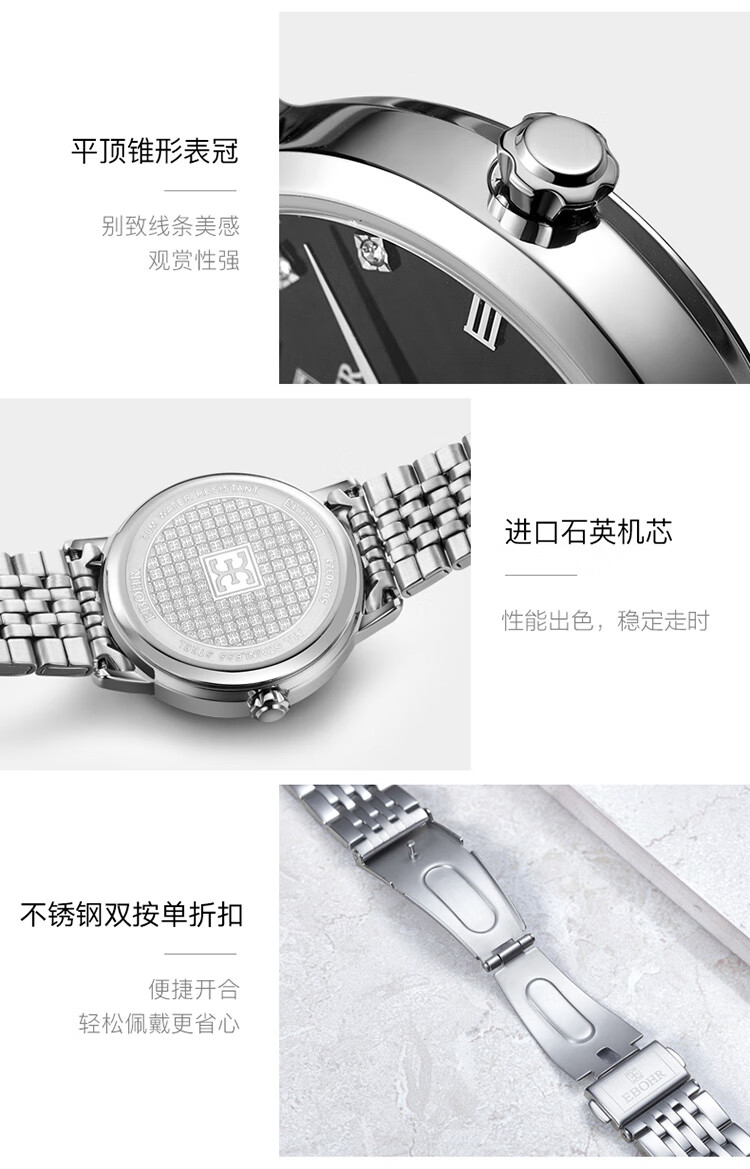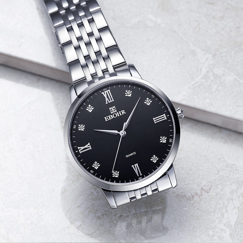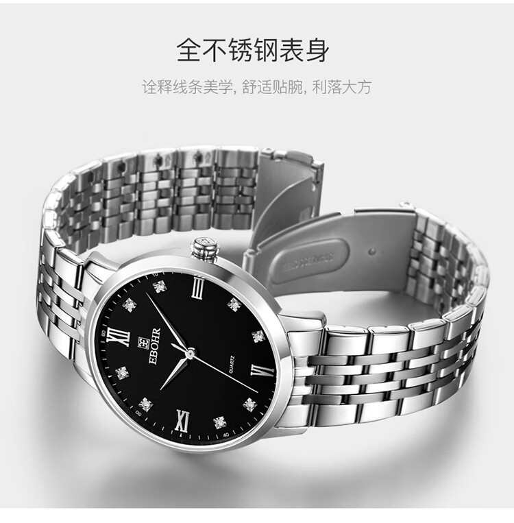 荐代发依波时代元素系列 石英表防水钢带手表女表黑盘 50290321