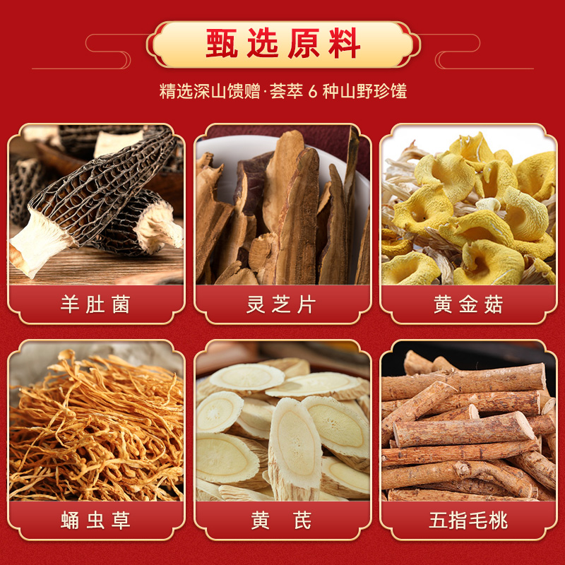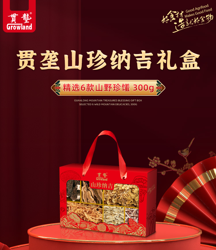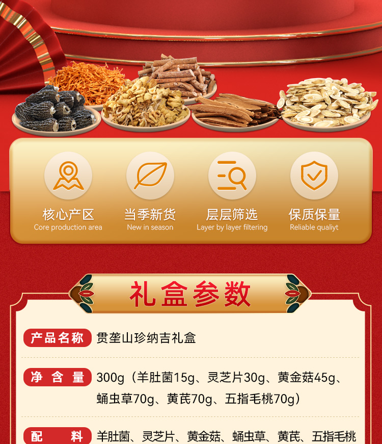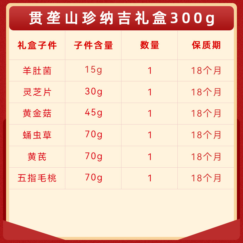 代发贯垄山珍纳吉礼盒300g【羊肚菌、黄金菇、灵芝片、蛹虫草、黄芪、五指毛桃】