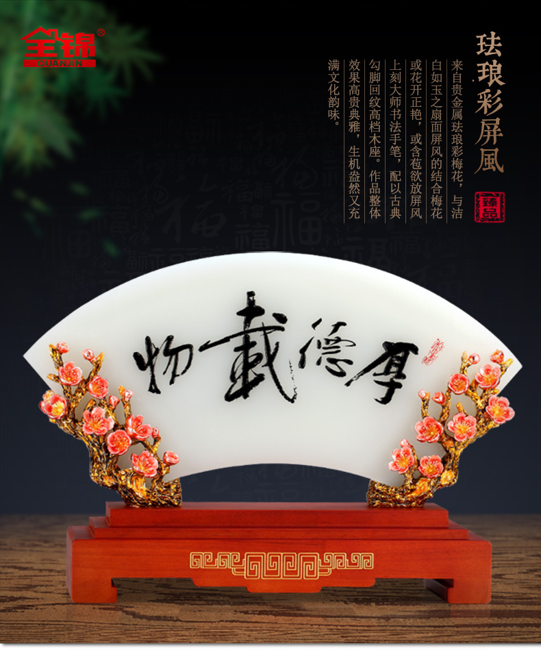 代发全锦(大号)珐琅彩屏风摆件厚德载物琉璃工艺品客厅办公室玄关开业送礼