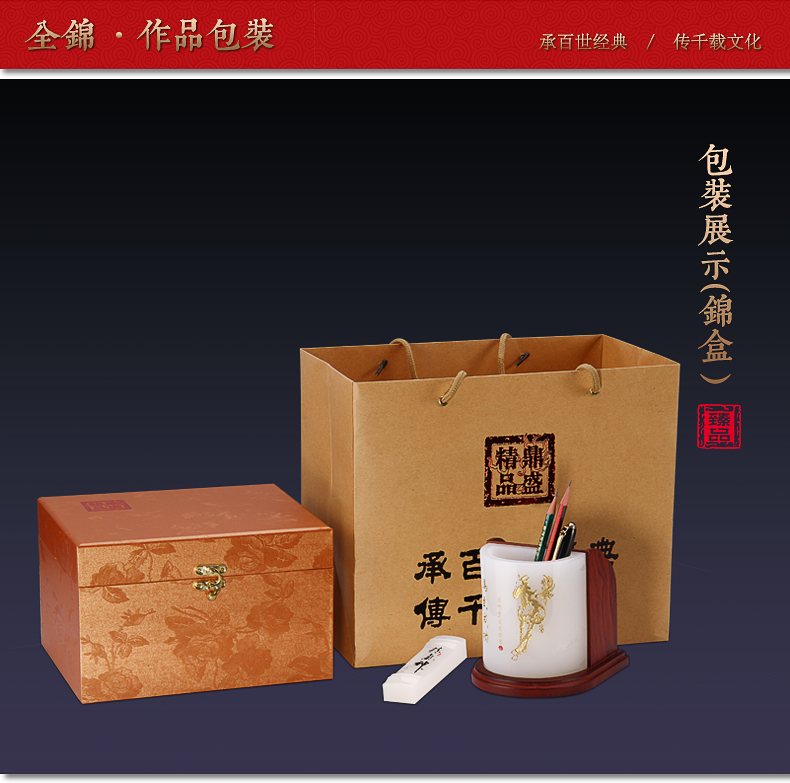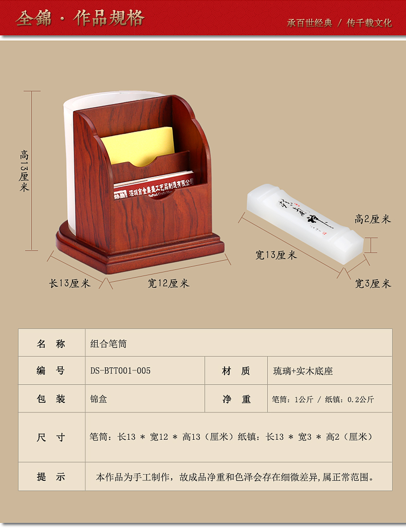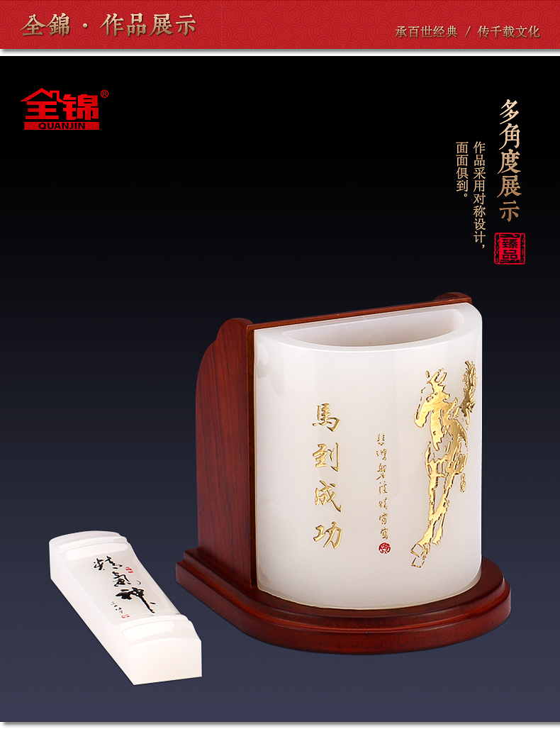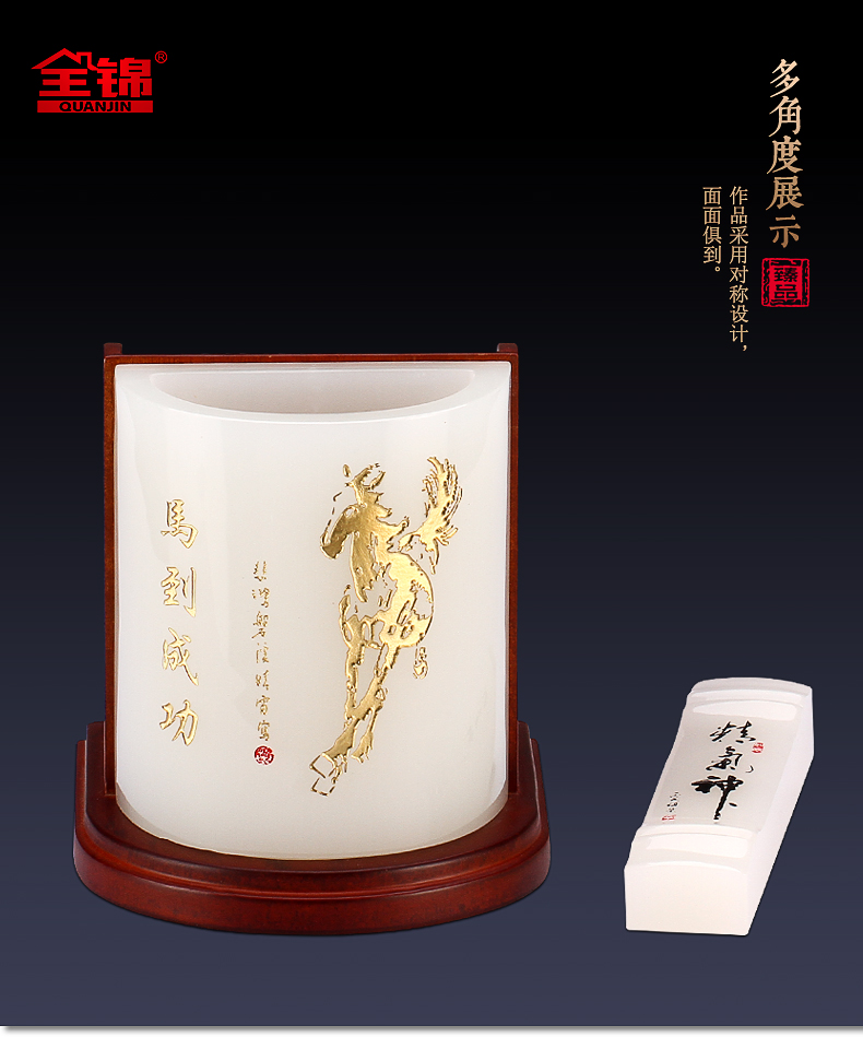 代发全锦DS-BTT001笔筒摆件琉璃工艺品送老师教师节礼物办公摆设实用高端定制