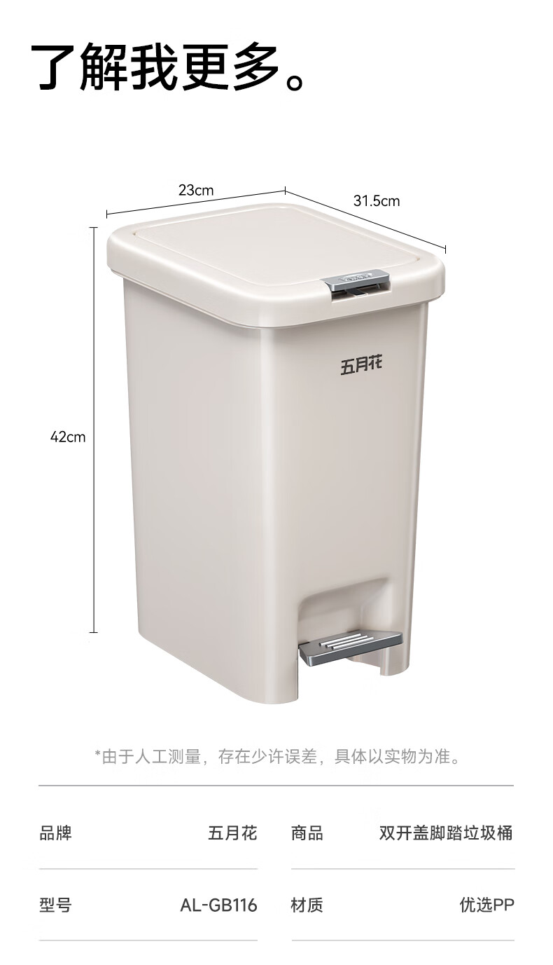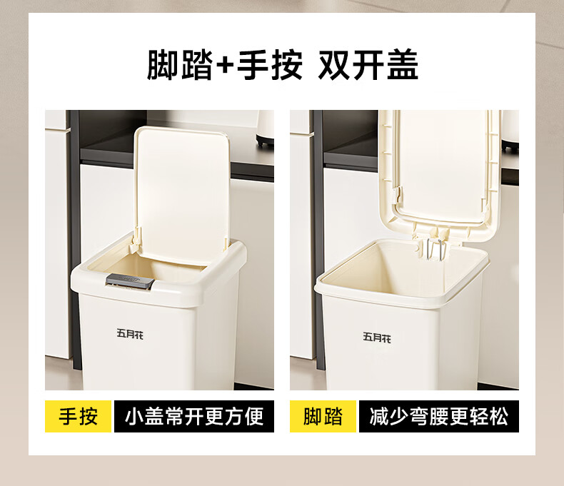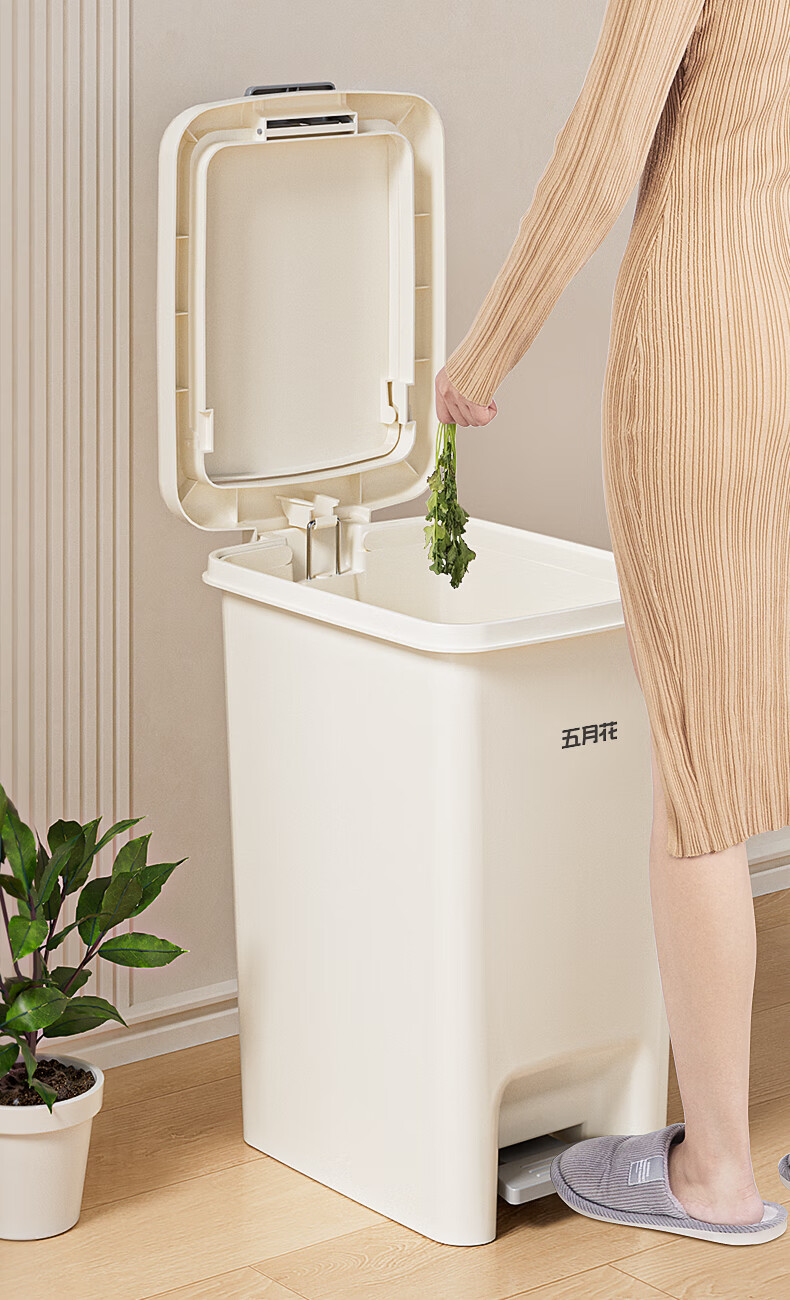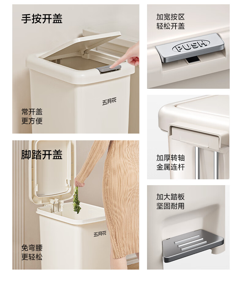 荐代发五月花手按脚踏塑料垃圾桶 AL-GB116