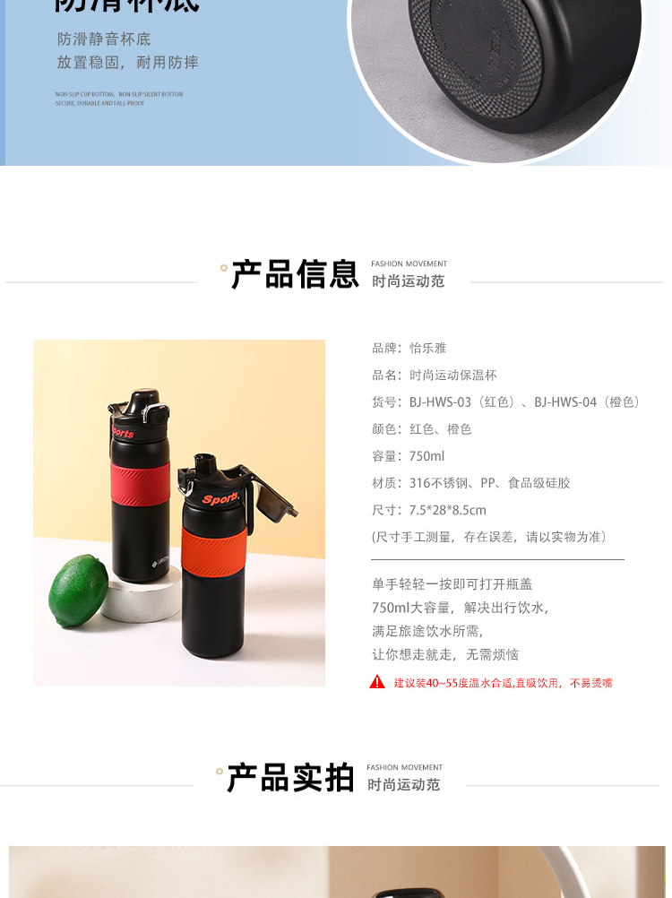 源头怡乐雅 时尚运动保温杯 750ml