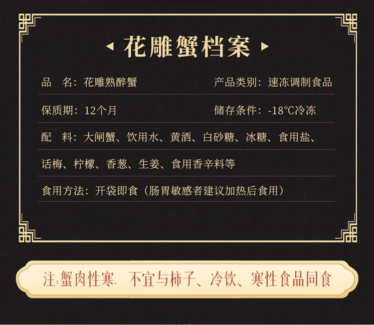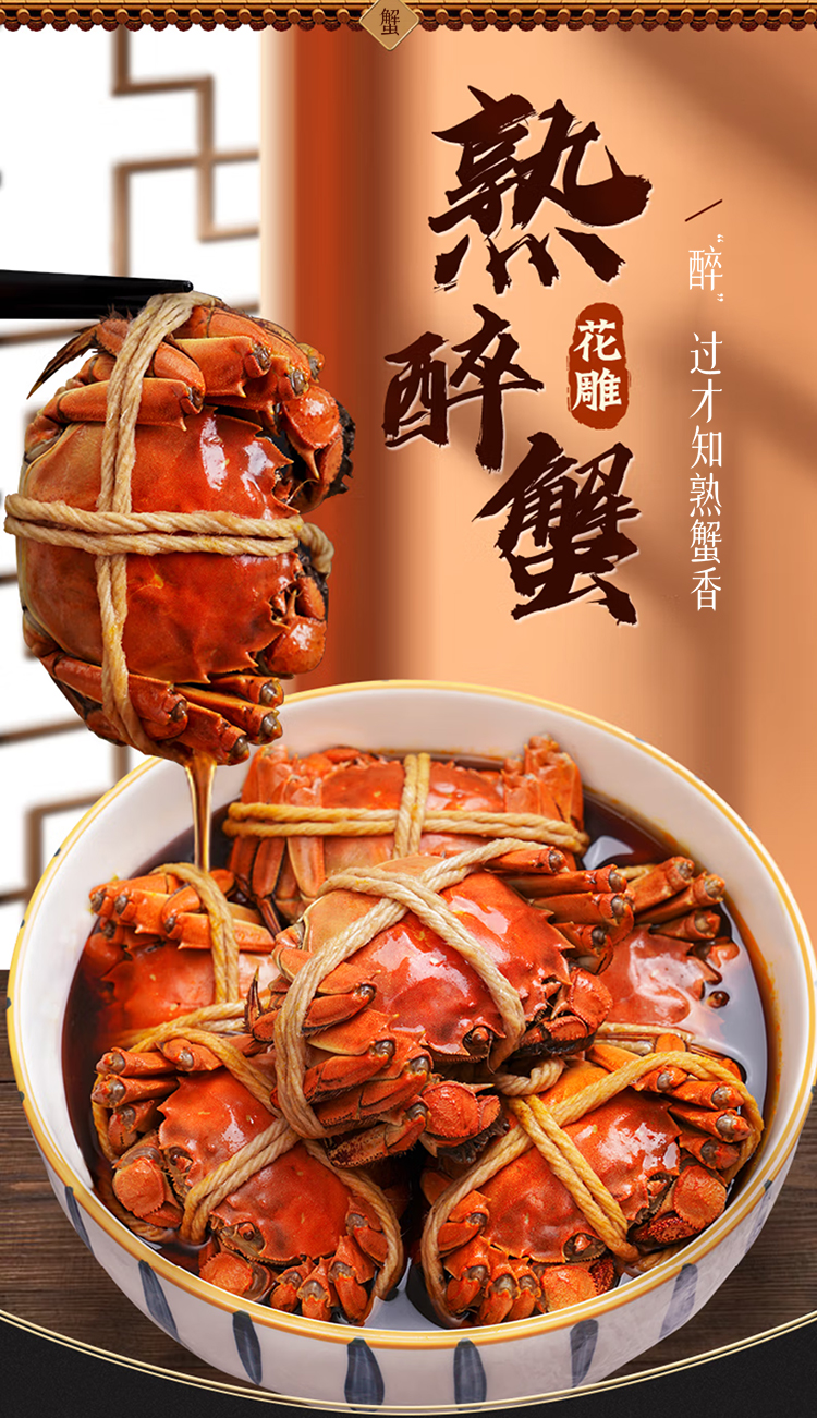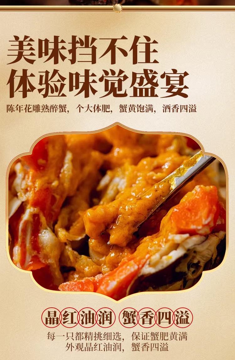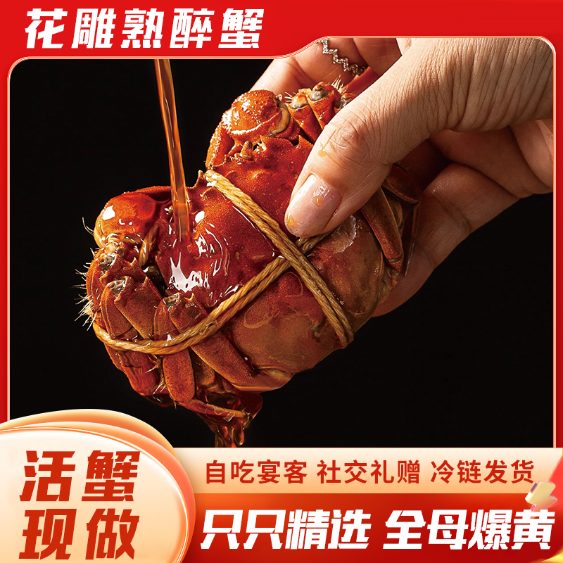 代发苏霸王花雕醉蟹精品全母蟹2.7-2.4两*4只/盒900g买一送一到手2盒8只