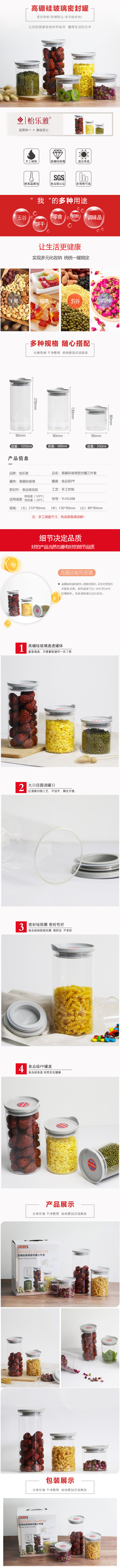 源头怡乐雅 玻璃密封罐三件套 YLYG388