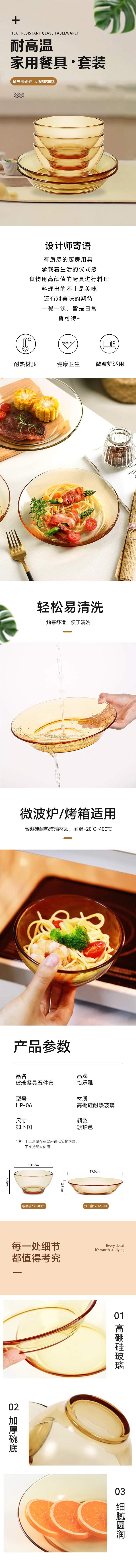 源头怡乐雅 高硼硅玻璃餐具五件套 HP-06