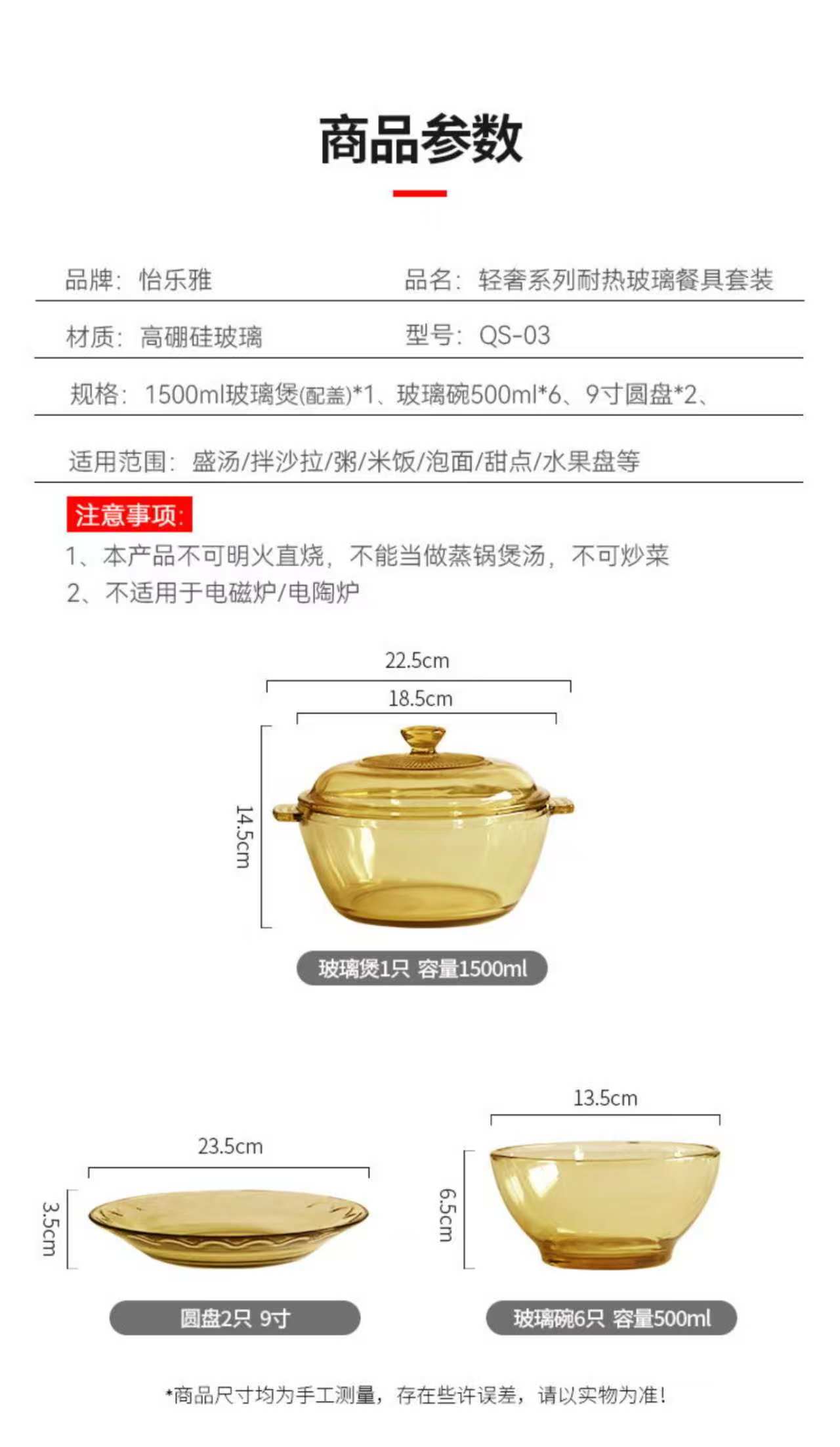 源头怡乐雅 琥珀玻璃餐具套装 QS-03