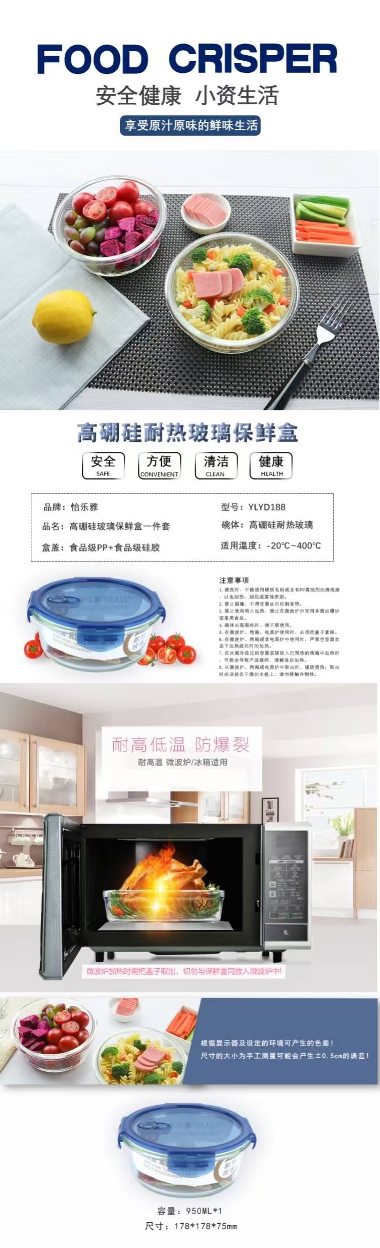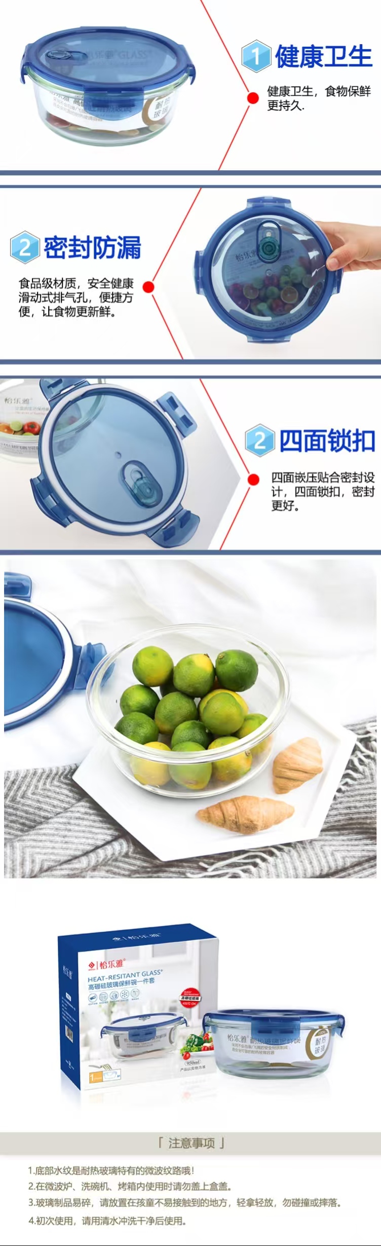 源头怡乐雅 高硼硅玻璃保鲜碗一件套 YLYD188