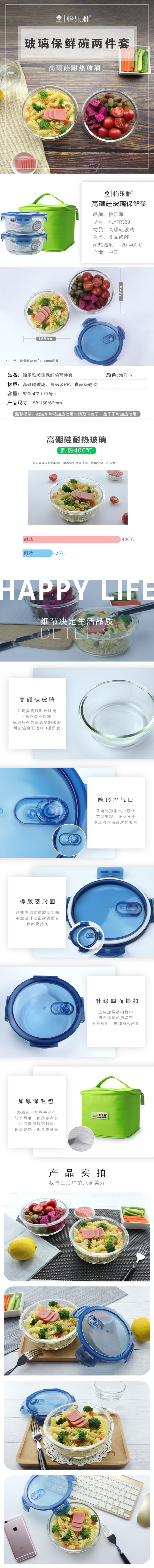 源头怡乐雅 高硼硅玻璃保鲜碗两件套 YLYTR369