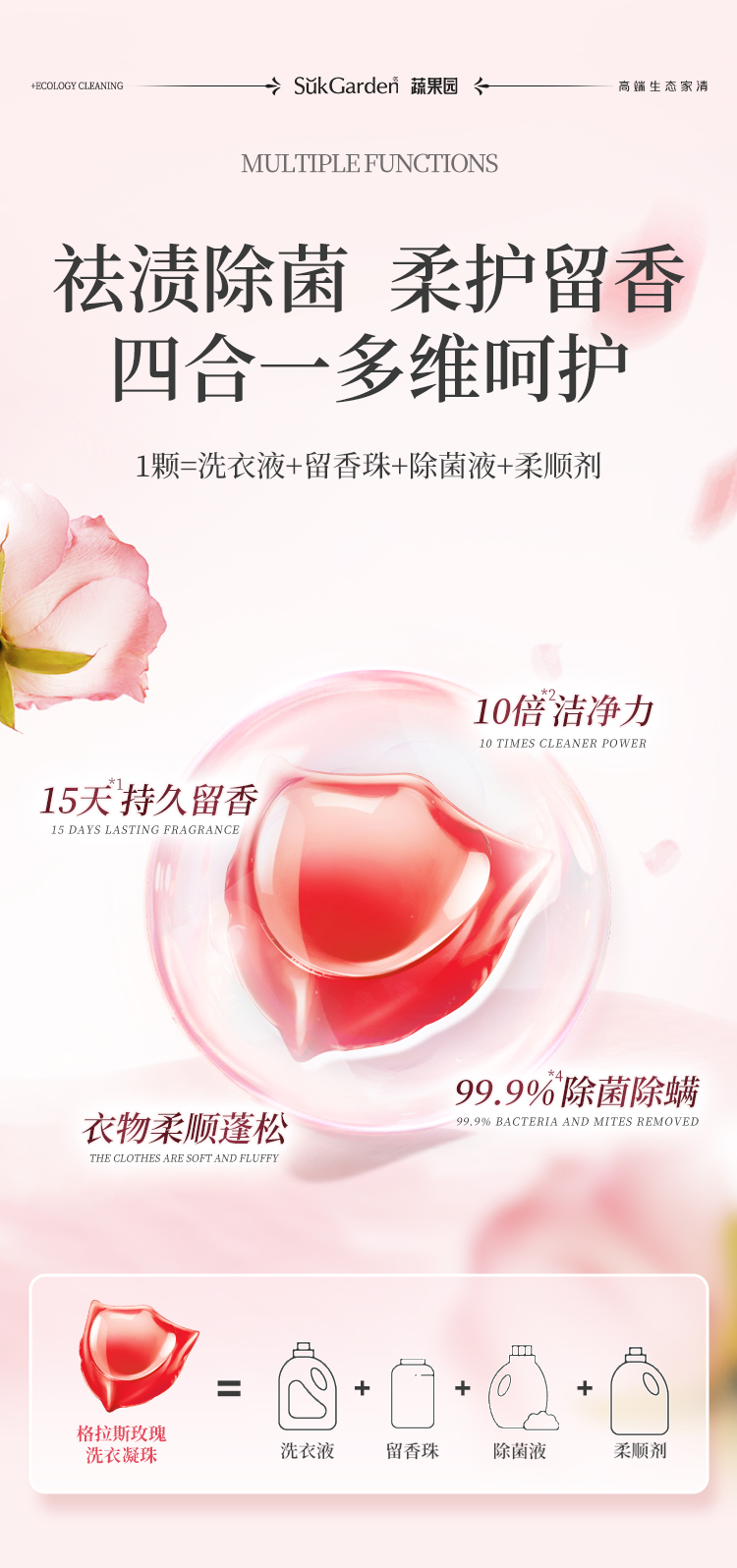 代发SGY0878蔬果园格拉斯玫瑰洗衣凝珠8g*30颗