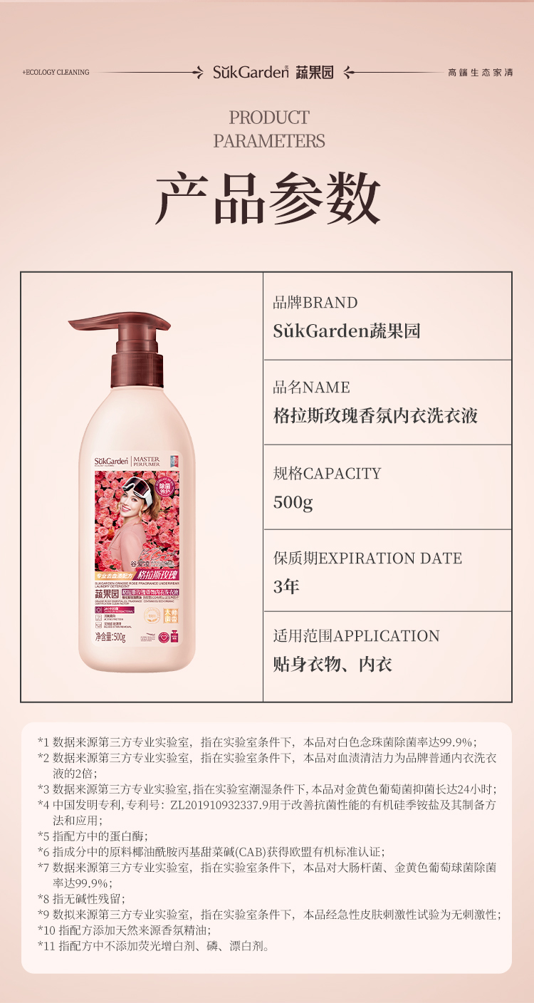 SGY0887蔬果园格拉斯玫瑰香氛内衣洗衣液500g*1瓶
