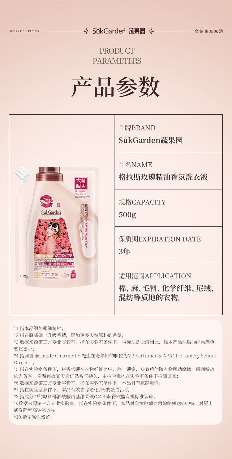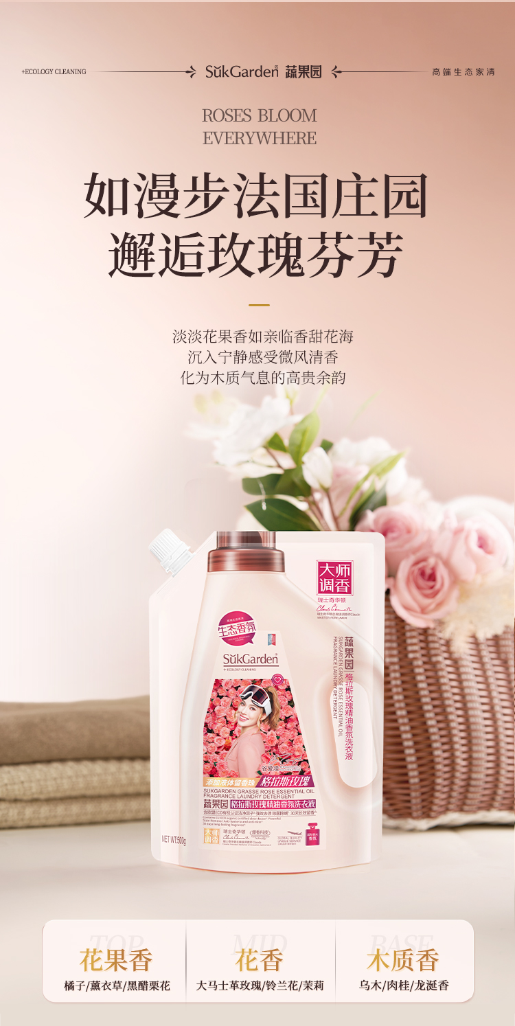 代发SGY0886蔬果园格拉斯玫瑰精油香氛洗衣液(袋装)500g