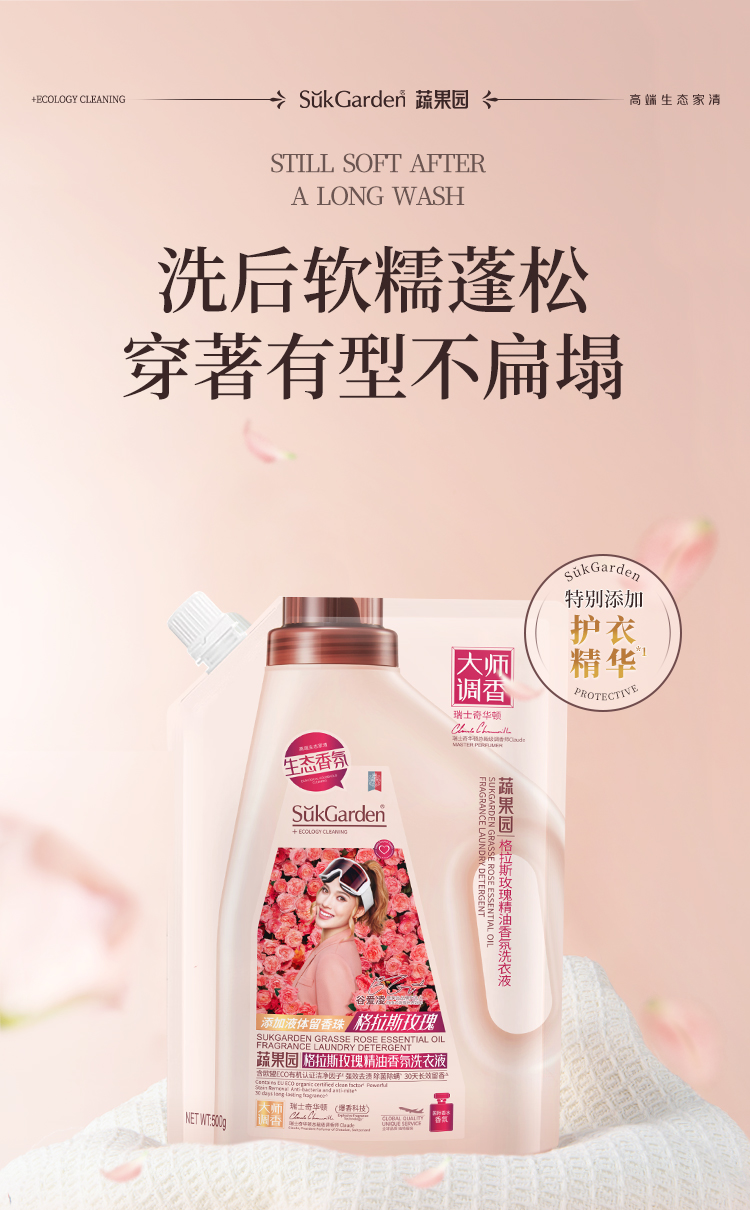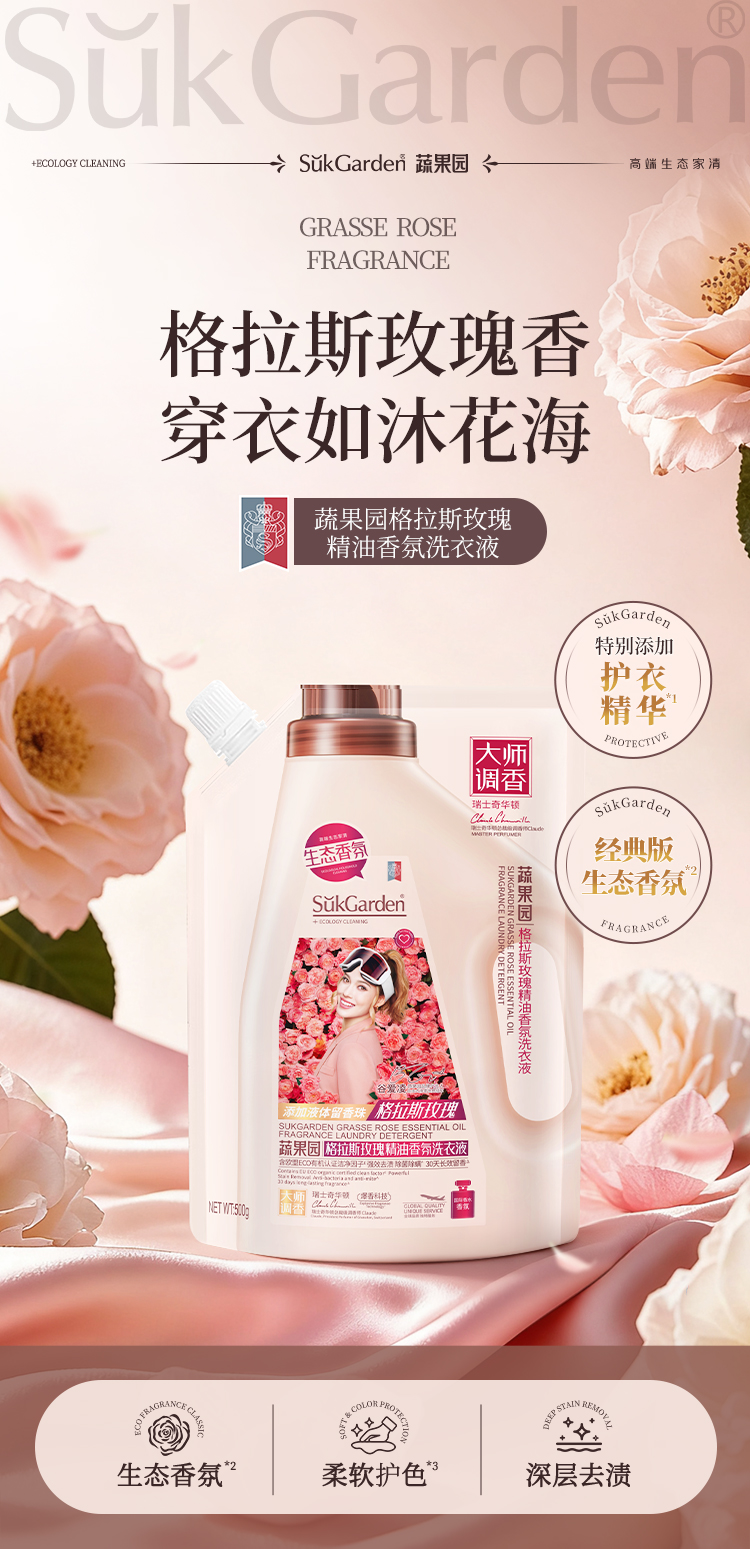 SGY0886蔬果园格拉斯玫瑰精油香氛洗衣液(袋装)500g*1袋