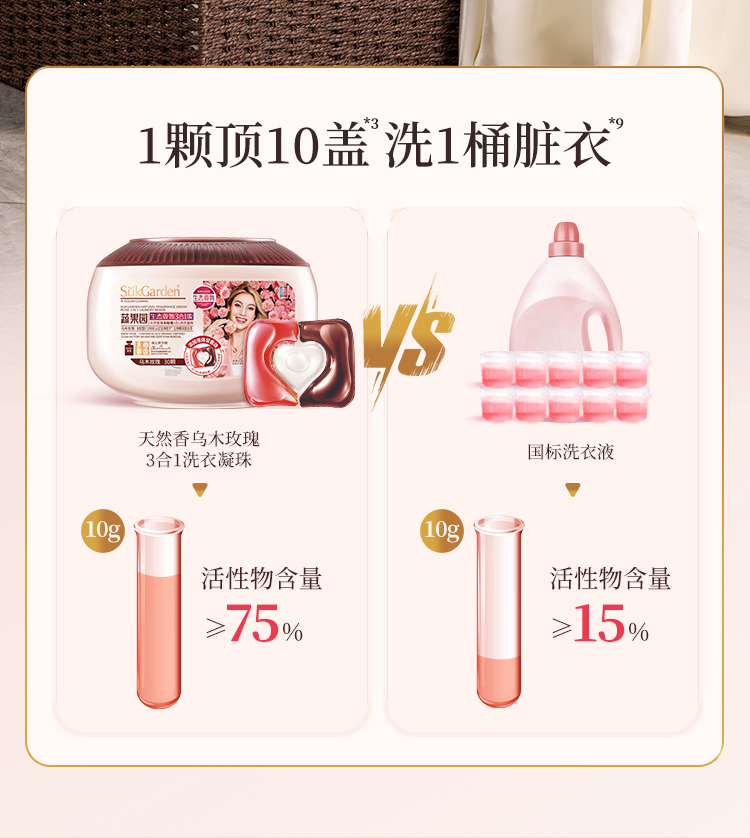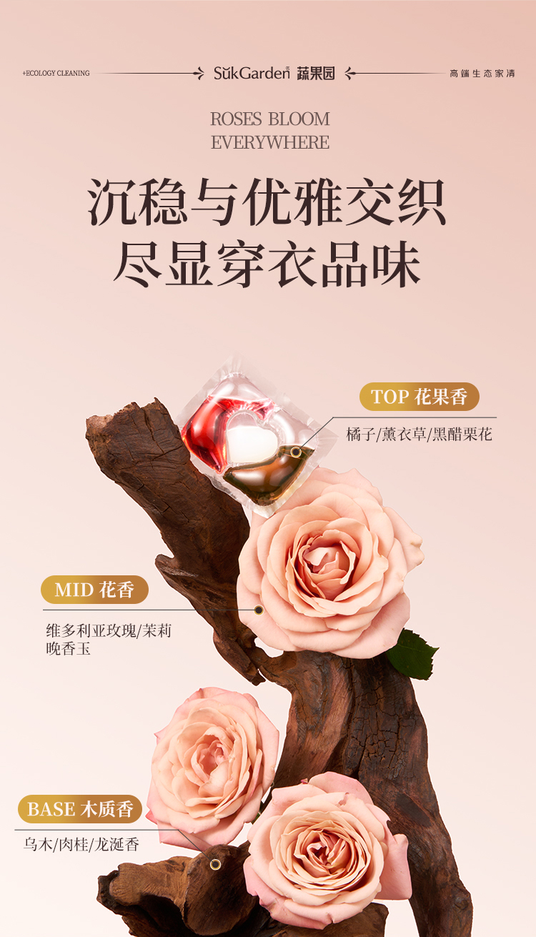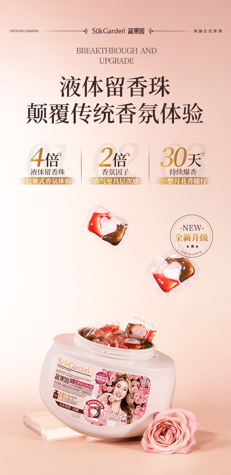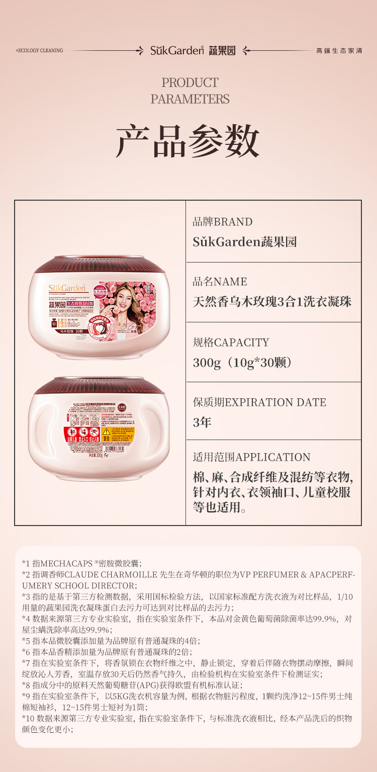 代发SGY0644蔬果园天然香乌木玫瑰3合1洗衣凝珠10g*30颗