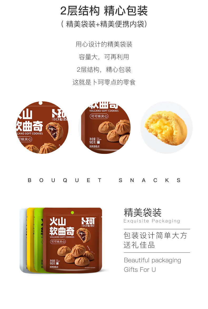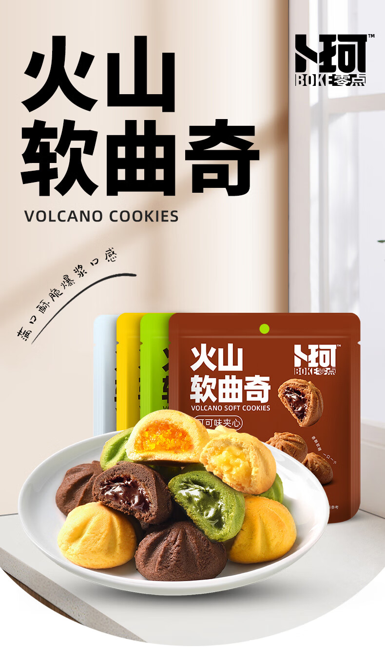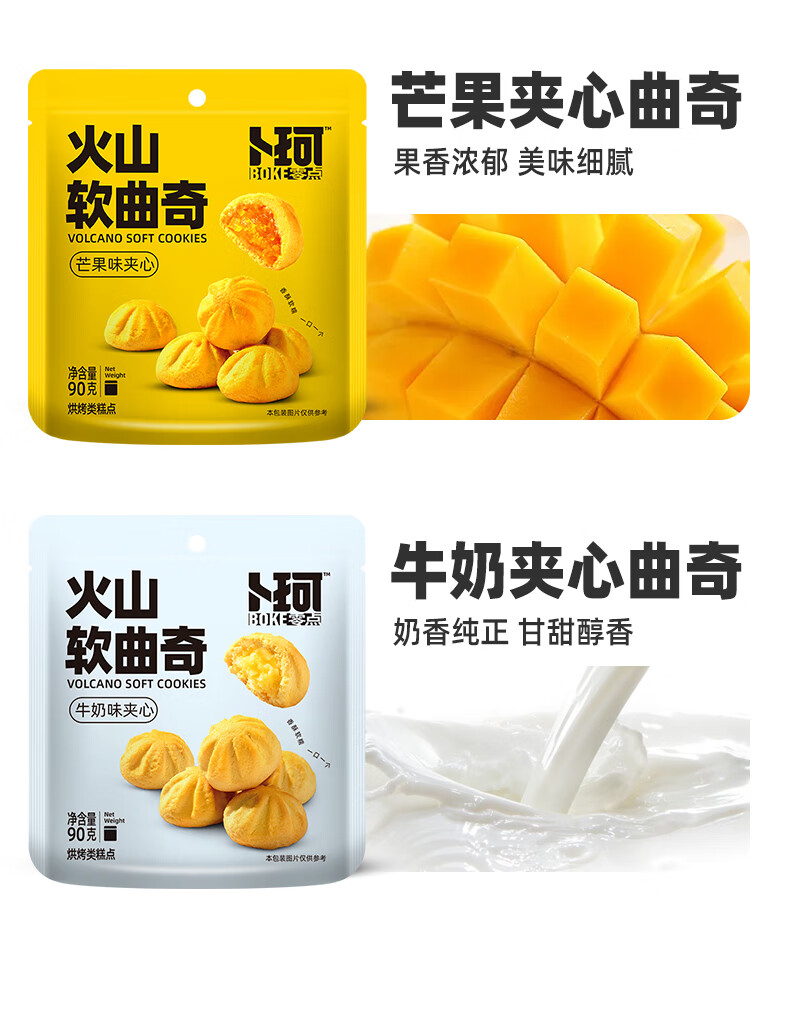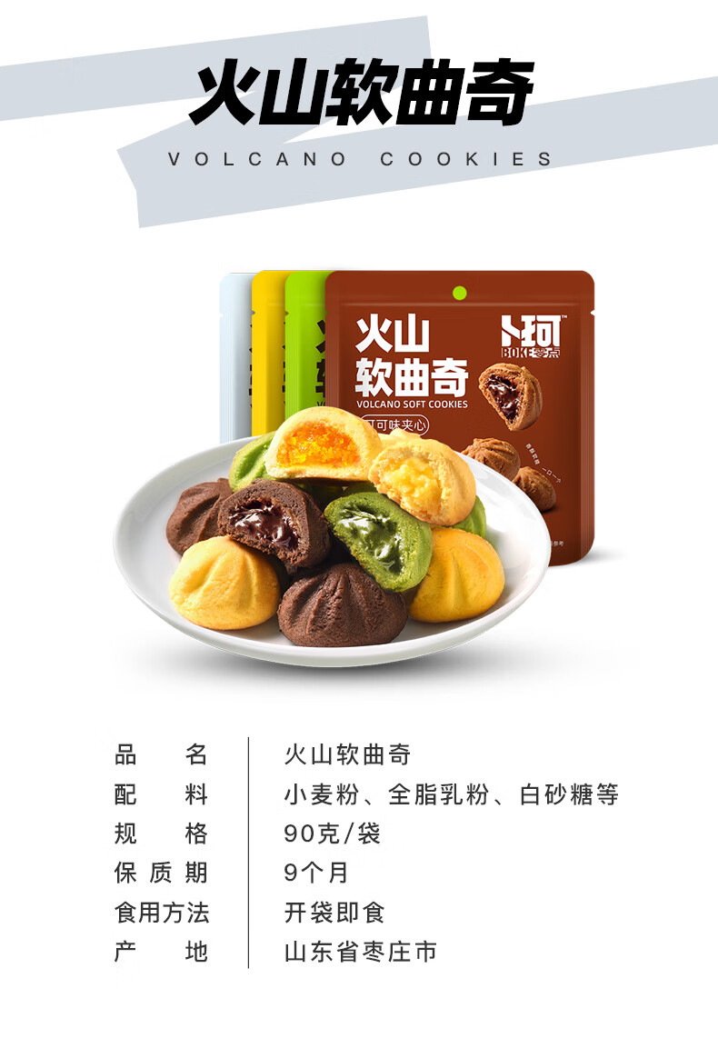 代发卜珂火山软曲奇90g*4(芒果夹心、抹茶夹心、可可夹心、牛奶夹心4口味随机)