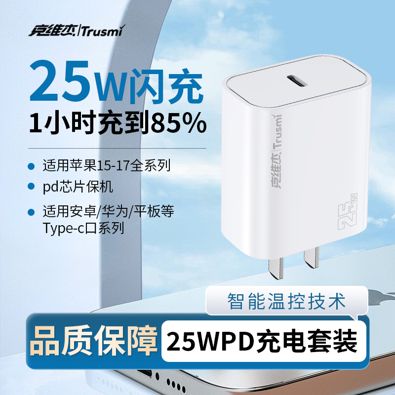 代发克维杰丨TRUSMIPD25W C口快充充电器套装带线C TO C 25W(EU)白色FEB-391GC2