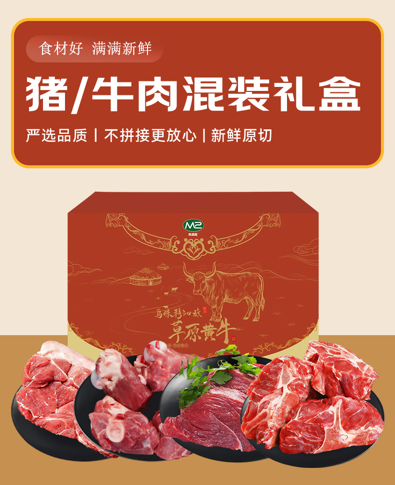 代发牧森甄 乌珠穆沁旗草原牛羊&大别山黑猪混装礼盒 2026版 398型